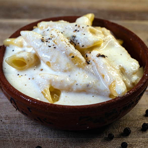 地中海のサルデーニャ産ペコリーノチーズと北海道産の国産チーズを使ったパスタ。